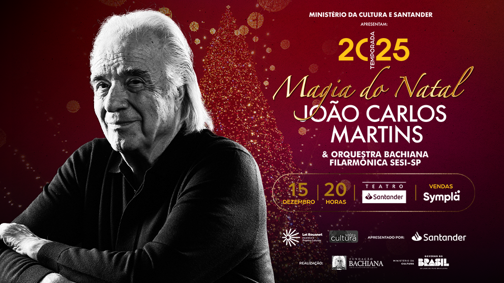 O maestro João Carlos Martins e a Bachiana Filarmônica SESI-SP voltam ao palco do Teatro Santander, para mais uma apresentação da Magia do Natal. O concerto será uma celebração da música clássica com convidados especiais e um repertório que atravessa gerações. Sob a regência de João Carlos Martins, o espetáculo contará com performances instrumentais e vocais. Bailarinos também subirão ao palco, trazendo trechos do clássico Quebra-Nozes e outros momentos coreografados que traduzem o espírito natalino. Entre as principais composições estão: Bransle de la Torche, Jesus alegria dos homens, Valsa nº 2 de Shostakovich, Pas de Deux do ballet Quebra-Nozes, Jingle Bell Rock, Medley Natalino, Hallelujah, Amazing Grace, What a Wonderful World, tributo a E. Morricone e a clássica Noite Feliz.